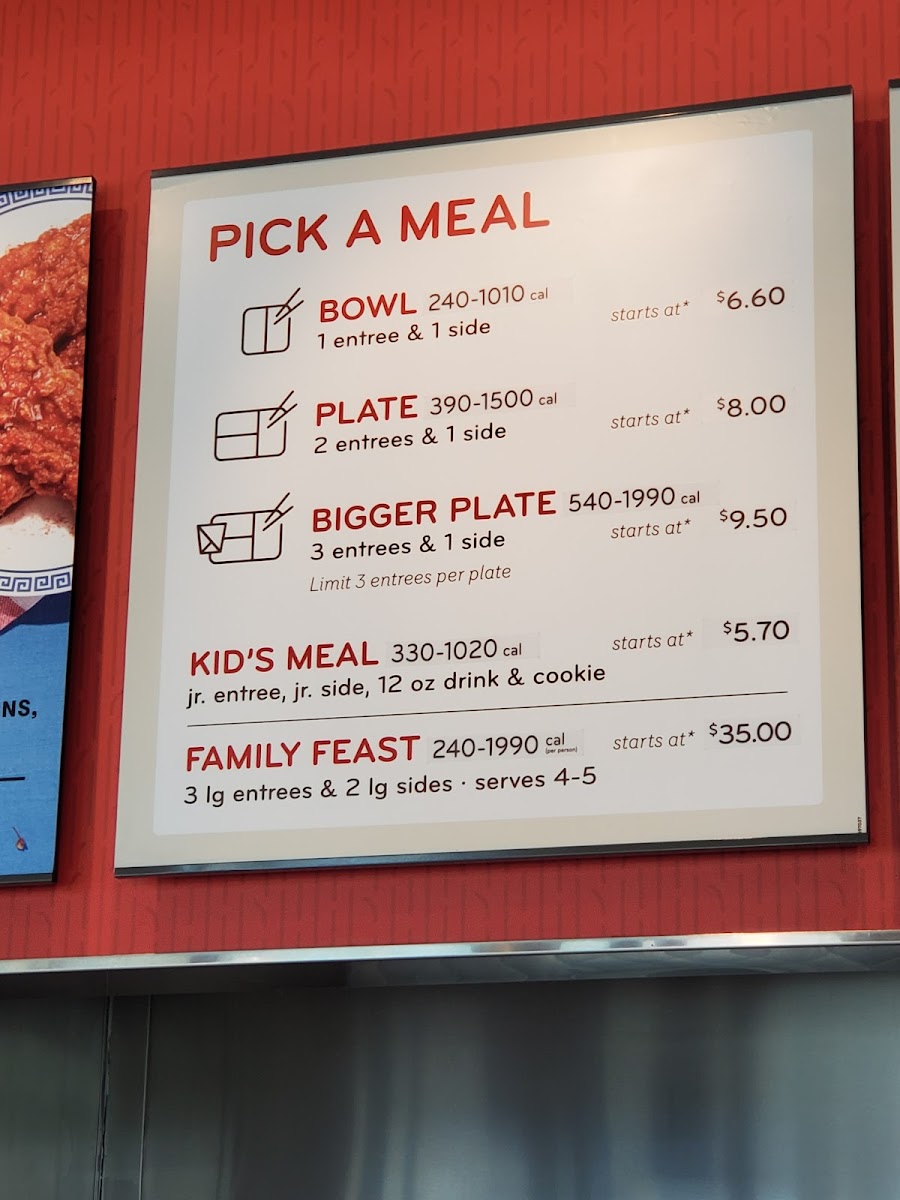 White Rice, Super Greens, Orange Chicken, Fruit Side & Bottled Water or Kid's Juice